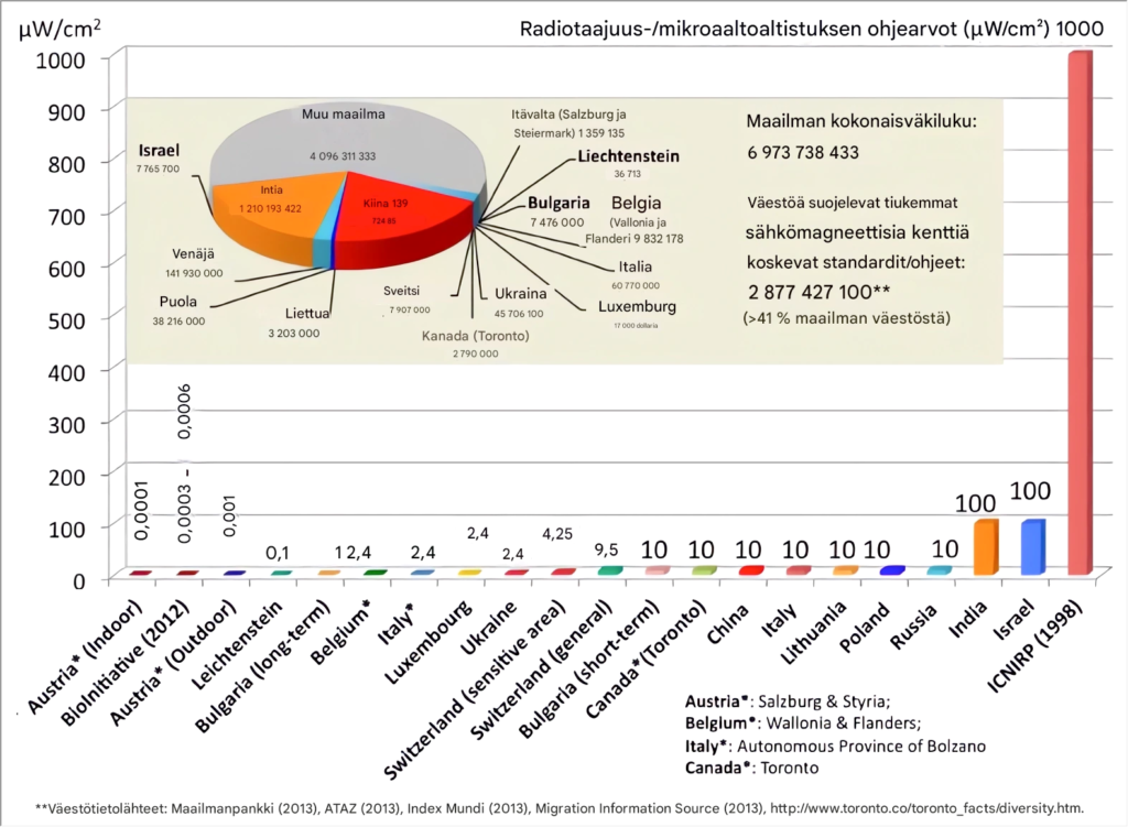 3. Suomessa ja Ruotsissa säteilyn raja-arvot perustuvat kansainvälisen ICNIRP-järjestön suosituksiin.